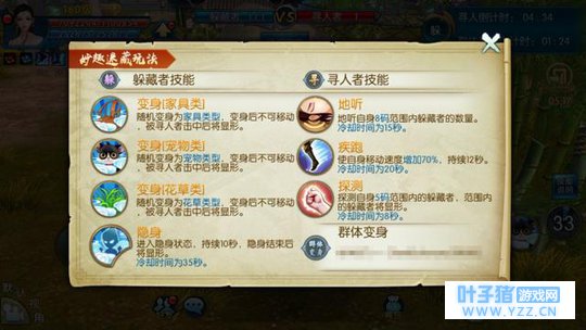 这里村长却有个小技巧去让躲藏者无所遁形,在这里躲藏者会变成三类物件,家具类树木类宠物类,在这里我们可以优先寻找那些所谓的家具树木进行技能探测。隐藏着能贴近环境下变身,在这里最亮眼的便是最突出的隐藏着,在这样的情况下,配合谛听技能探测,想必难以逃脱。