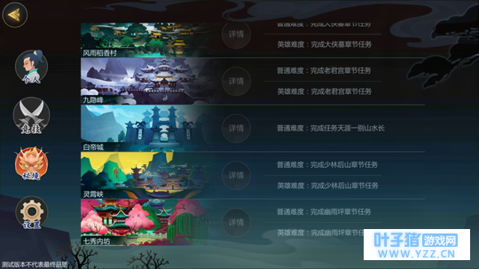 游戏部分场景地图,需要玩家通过剧情去揭开真面目。但是,游戏的初始地图不是稻香村而且纯阳,不管什么门派都是在纯阳出生参与纯阳剧情,有点难受。