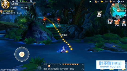 游戏画风还可以,打坐一如既往的回血。黄色的光点是任务路线提示。