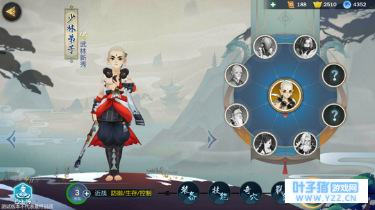 前边说到不能选择新角色,但是这里我们可以看到,通过界面右上角侠客按钮,我们可以进入上图界面,解锁新侠客之后应该就可以随时更换使用,所以游戏开始只能选择一种角色(性别都是固定的。)