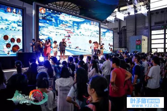 名剑大会 激情对战 在连续4天的展会中,西山居游戏舞台每天都会有《剑网3:指尖江湖》的竞技互动活动。许多活跃玩家包括《剑网3》大师赛选手都纷纷参与,对决精彩纷呈,有的势均力敌,有的技压全场,常引得满场惊呼,又总是能迎来最后的喝彩;舞台、大屏幕、激情的解说以及台下满满的观众,都让玩家预先感受到了未来的移动电竞氛围~