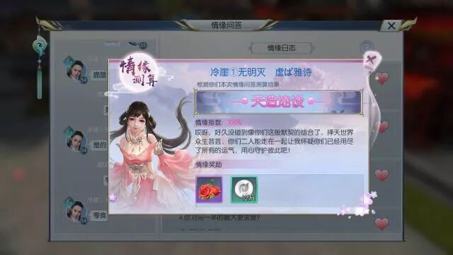 然而让我感到意外的是 情缘问答的结果是 10题全对,情投意合! 那一刻我如释重负 故作轻松地对她说: 你看,老天都希望我们在一起!