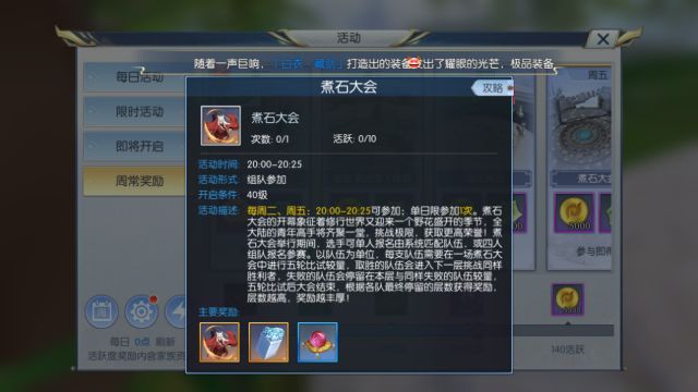 说了这么多,大家对煮石大会是否有了新的看法呢?今天就先到这里,今晚20:00开启的煮石大会期待大家有更好表现!
