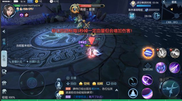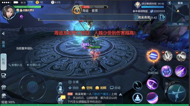 到此阶段,经过海迪此阶段的袭击,道友们会损血严重,需开启所有保命技能,并及时回血!