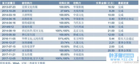 竞争格局:制作方市场集中度是否明显提升与卫视及视频网站渠道端的高集中度不同,上游制作方一直小而分散,以单个制片人团 队为核心成立的工作室是最为常见的制作方组织架构,每年仅生产 1-2 部电视剧。通过统计 以电视剧制作业务为主的十家上市公司,我们可以粗略观察近几年电视剧市场集中度变化。 从发行部数而言,以华策、慈文、完美为代表的十大电视剧公司发行部数市场占比稳定, 2014-2016 年均占比 20%左右。从收入端来看,电视剧收入规模在市场规模中占比波动性 较大,一方面由于播映档期带来的收入确认影响,另一方面由于部分上市公司没有抓住视频 端流量崛起的红利,仍以电视台销售为主,市场份额占比有所下滑,CR10 仅为 30%,市 场集中度有大幅提升空间。 未来电视剧市场集中度的提升,一方面是通过借力资本市场,投资并购中小制作方,如 华策影视收购克顿传媒、完美世界收购鑫宝源影视等举措实现产能的快速扩张。另一方面, 单个公司的产能扩张必然是渐进的过程,电视剧摄制作为人力密集型产业,通过将电视剧摄 制过程制度化、流程化以及优质制作团队的吸纳,逐步实现产能的扩张。 2013-2017 年电视剧行业相关标的投资并购一览