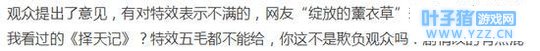 17日晚第一集开播后,特效就被真正受到人民群众火眼金睛的检验。这个据说投资了四亿的宏伟制作好像也并没有得到十分的认可,特效师的鸡腿加不了了。