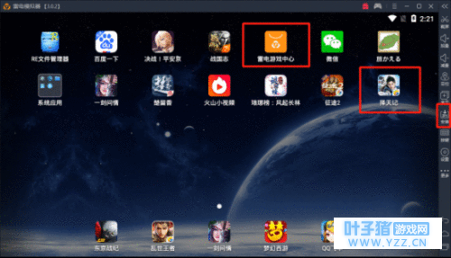 二、打开雷电安卓模拟器,在雷电游戏中心搜索“择天记”进行下载,或通过模拟器右侧栏目里面的APK安装功能打开下载到电脑上的游戏安装包。