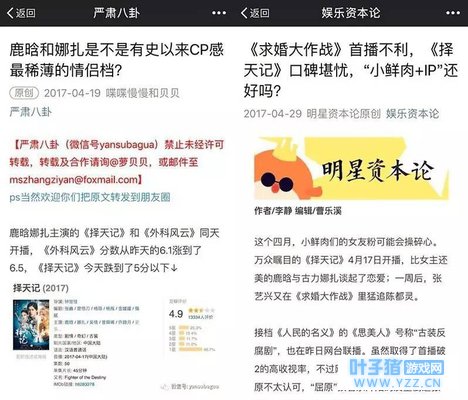 北青报一文传播路径图 4 我们的总结 1、 我们强烈建议影视行业片方多向公众普及收视率概念。 平心而论,《择天记》收视成绩不俗,但正因为收视率问题比较专业,数据来源也不同,公众压根搞不清“破1”在整个电视剧行业里到底处于什么水平;另外,将《择天记》与《人民的名义》做对比看似合理,但其实经不起推敲。 2、 演员演技问题是比较主观的 ,青菜萝卜各有所好,投资方是没办法阻止差评的, 与其说自己“好评如潮”,不如直面争议,多让演员出来接受采访博好感更有效果 。鹿晗接受广州日报采访的那篇稿子就是个不错的案例。 3、我们会发现收视和口碑之间存在一个矛盾:有影响力的自媒体都说《择天记》难看,豆瓣上也确实存在不少差评,那按照常理来讲,《择天记》收视率应该不断下降,但事实却是其收视率始终保持在1左右。究其原因,可能是鹿晗的影响力、粉丝对鹿晗的喜爱。哪怕剧情不连贯、改编不理想,粉丝们跪着也要看完。单纯从这个角度看,鹿晗确实无愧于流量担当。而 对于投资方来说,投资电视剧真的是一场未知的豪赌,剧集播出后到底口碑如何,投资方是没有底的,但请“流量担当”演戏,至少能保证稳妥的粉丝收视。 |