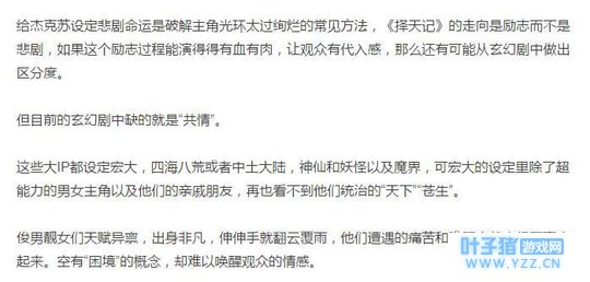 微信自媒体严肃八卦认为,《择天记》剧情和观众没有“共情”。