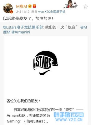 今日,Lstars电子竞技俱乐部发微博“我们的一次蜕变”并艾特鹿晗和Armanini,并且同一时间鹿晗也转发了这篇微博,并称“以后就是战友了,加油加油!”这是要搞什么啊?要进军新的领域吗?鹿晗挺会玩啊,自己玩王者不过瘾,现在又要组队去“吃鸡”?