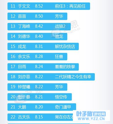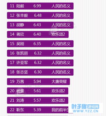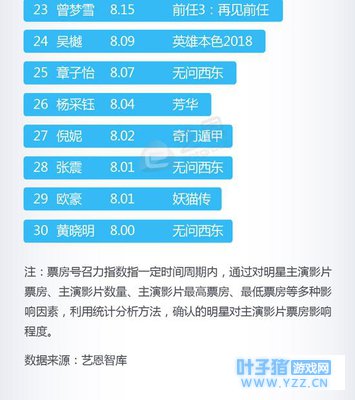 本排名筛选标准是:1、华语演员(内地港台);2、内地票房(不含海外港台)3、只包括2017年度国内上映,演员参与主演的作品,不包括动画配音作品等;4、剧集标准:2017年CCTV-1、CCTV-8、30家省级卫视2017年新开播的黄金档剧集及周播剧集。 |