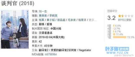 好消息是在2月4日率先开播的《谈判官》无论是剧情还是演技,都是满满的槽点,口碑遭遇滑铁卢,豆瓣评分大有跌穿3分线的趋势。这部号称《亲爱的翻译官》第二部的作品似乎并没有延续《翻译官》的水准。编剧也确实是个人才!