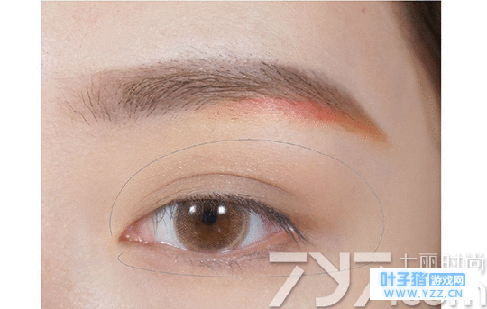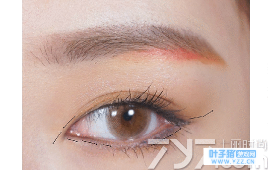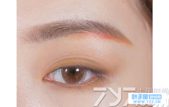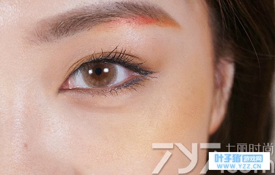 然后再用扁平的刷子将哑光橘色眼影轻轻地少量的晕在眼皮中间,营造淡淡的橘色~如果眼皮有点肿,就用点深棕色像压一条眼线那样画在内眼线处。