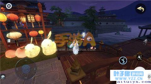 有了烟花摊,那必然要有一个灯笼摊才算完美。这个灯笼摊在奈何桥下,一个架子上挂满了各式各样的灯笼,在地上还摆着两只可爱的小兔子灯笼,给这个灯笼摊增色不少,挨着摊位就是一截短桥,下面有河水潺潺,也有盏盏许愿的莲花灯。相比于这边灯笼映衬下的喧闹,远处的院落和河水却是一片沉寂,一动一静同时出现在眼前却相得益彰。不得不说这个灯笼摊摆放位置的精妙,可是这样的小摊却是无主的,少侠可愿意在元宵佳节这天来这里做一个摊主? |