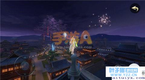 如果少侠你不喜欢热闹和喧闹,那么使用轻功飞上屋顶,便可以享受别样的宁静。这里不是神都最高的地方,也不是神都风景视野最好的地方,但是在这里可以看到万家灯火,可以看到巷陌中的花灯串串,还可以看到神树上挂着的红绸与红灯笼,有种遗世而独立的寂静和超脱凡尘的视角,在这里看着天边的烟花,静静想着自己的心事或者默默对着神树许下自己的心愿,都是一个不错的选择。