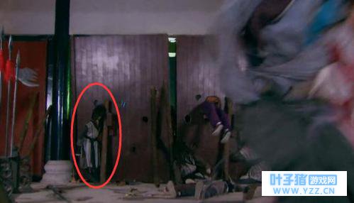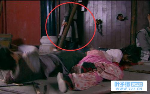 【仙剑奇侠传三】第三集穿帮,这个时候景天和雪见倒在了地上,然后他们站起来逃跑,注意看后面木头旁边的人,前后姿势不一样,群演是不是站累了换个姿势呢?