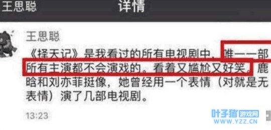 王思聪在看了刘亦菲得《择天记》后说,刘亦菲和鹿晗就两个没有演技得面瘫。