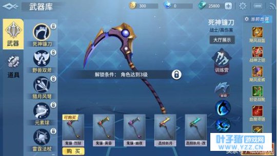 死神镰刀是小A玩的最喜欢的的一样武器,优秀的技能让你在单兵作战的时候所向披靡,并且因为独特的技能导致无敌的你的出现。废话不多说,看下面技能解析 【被动技能】:对生命对于30%的单位造成伤害提高25%(这可是你的神技被动) 【冲锋】:向前冲刺,挥舞镰刃对敌方造成55(+1.10*物理攻击)的物理伤害 【摄魂】:挥舞镰刃,将中距离敌人拉至身前,命中造成45()+0.9*物理攻击)的物理伤害,并附带0.5秒眩晕 【死神降临】: 死神降临,对自身范围造成140(+1.20*物理攻击)的物理伤害,附带2.5秒30%减速,同时自身每次攻击命中敌人后提高自身25点物理攻击力,最多可叠加5次,持续6秒 连招可以选择先二技能晕眩对方再开启大招疯狂平A,如果敌人隐身或闪现跑开,就使用一技能冲锋到对方正前面。打不过的情况也可以先大招开启抗伤害,再一技能位移过墙采用游击战术,慢慢的肉死敌人。