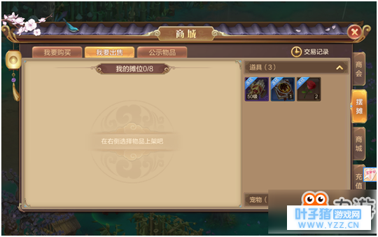 【关于摆摊】 在当前版本中,商会系统是幻想小伙伴们最基本的交易渠道,在等级不足的情况下,我们是不可以进入摆摊系统的,当我们达到42级,就可以进行摆摊了。在这之中我们可以买到各种装备、宠物、时装、技能、奇珍异宝等等各种物品。交易的物品都是非绑定物品,在摆摊系统中通用的货币是金币。