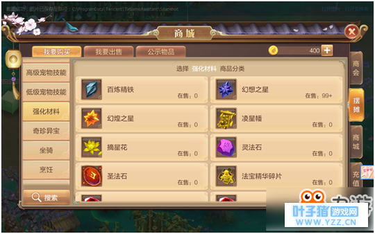 材料类:各种强化材料、奇珍异宝(也就是各种材料)都很容易的可以在摆摊系统中得到。