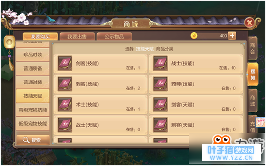 技能类:各职业所使用的技能书、天赋书、绝技书甚至宠物技能书都可以从摆摊系统之中购买到。