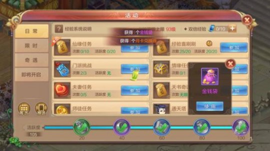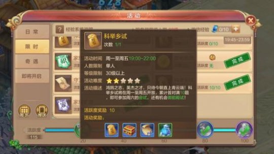 自由幻想这款手游内容十分丰富,有大量的活动,哪怕小伙伴一天都泡在游戏里也不会觉得无所事事。但还有很多小伙伴要忙于工作、学习,因此,合理的运用时间来完成日常才是重中之重。下面小编将按照时间的先后顺序为大家详细讲述。 宝图任务:比较好的一个福利日常,只需要点击npc接任务就可以自动完成,建议在早上起来吃饭或洗漱时做。(活跃度:20) 仙缘任务:只需要一只手来点击接取或完成即可,可在乘车时做。(活跃度:10) 家族任务:只需要一只手来点击接取或完成即可,可在乘车时做,若是任务难做可放弃重新接取。(活跃度:5) 经验洗刷刷:只需要组到队伍挂机即可,可在工作/学习中来完成,每隔30分钟~1小时扫一眼,若队伍解散可以继续找到队伍挂机。(活跃度:20) 冲锋战场:建议大家选择中午第一和第二场(坑比较少~),正好在饭后午休时做。(活跃度:10) 副本:按照等级,玩家会有两个对应副本,由于挑战级副本每周只有一次奖励,故在本篇攻略中暂时忽略不计。两次普通副本可以在下班/放学之后来组队完成。(活跃度:20) 科举乡试:在晚间7点的一个简单活动,答案可以网上查询或询问家族成员。(活跃度:10) 家族炼器、家族酒会、家族传功:此三个日常可以一起来做,节省时间,由于炼器任务偶尔所需的材料会比较珍贵,在家族酒会期间成员较多,可以更快的完成。(活跃度总计:40) 周历活动:包括荣耀竞技场、神之猎场、楼兰夺宝、法器护送、家族矿洞等(星期2、5、日,活跃度:20;其余活跃度30) 按照小编的方法,小伙伴被安排的明明白白,再也不用担心活跃度不够的问题了,在这里小编也要提醒大家在游戏娱乐之余还要注意休息啊! |