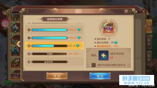 11.金币的获取基本就是各种活动得到的物品,副本和挂机得到的装备,生活技能物品,还有宠物。 12.后期,红蓝储备在交易所买生活技能物品比在NPC那里买大红大蓝合算。 13.每天带队一条龙,会有队长力的积累,下一周会给元宝,队长优势,队长力每周排名第一给一个黄色老司机的称号。 14.强化,1-6用银币强化,7-12元宝,13+彩玉。 15.前期强化先等级,不要在意星级,攒玄石再慢慢上星,强化传承。