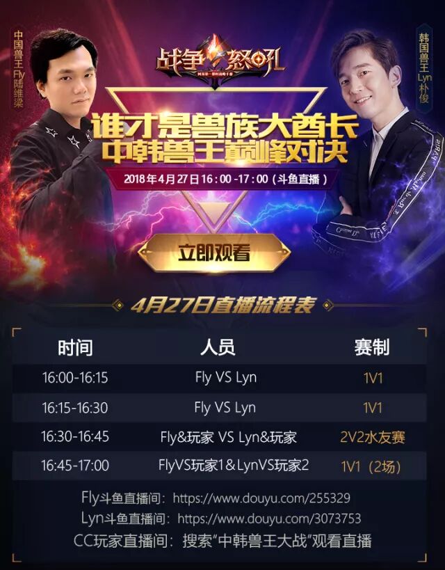 4月27 日 (明天)下午 16:00-17:00 ,明明陪大家在 斗鱼直播 观看 中韩兽王巅峰对决 !玩家爸爸们千万不要错过!