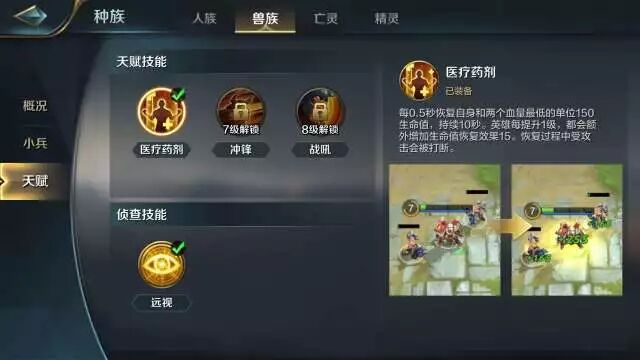 种族方面推荐大家使用 人族和兽族 ,他们都拥有可以恢复周围单位生命值的天赋技能,为我们的前期作战提供续航能力,不用频繁地回城。