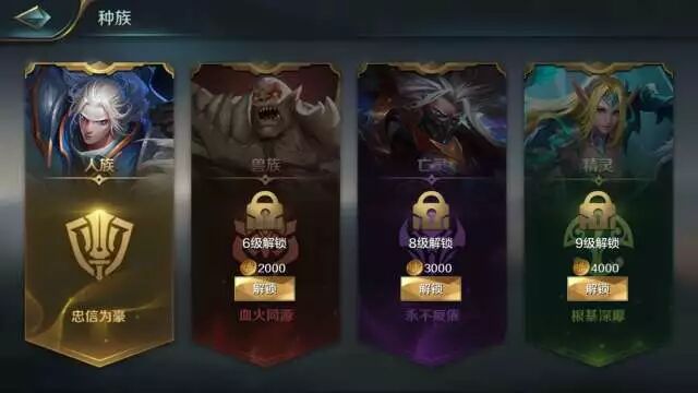 种族解锁条件调整 兽族 8级 7000金 亡灵 10级 8000金 精灵 12级 9000金