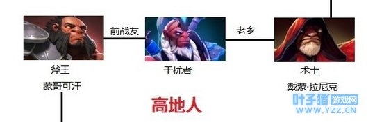 斧王 , 干扰者 (萨尔)和 术士 都是有关系的,他们都来自 高地部落 ( Oglodi tribe)。