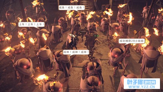在9S修理期间 2B去会见了一个想要结成 和平联盟的机械生命体群体 结果对方是一群想要成神的疯子 并且想要杀死2B一起成神