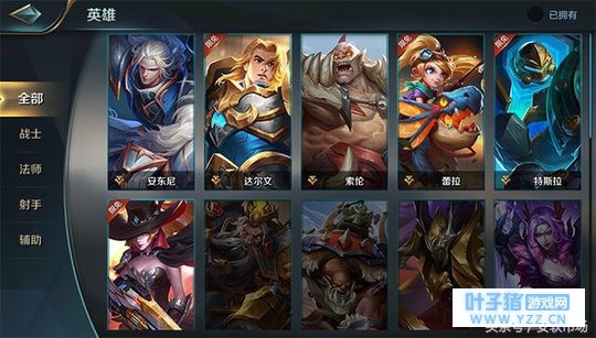 除此之外游戏中还有英雄选择,这些英雄职业又分为战士、法师、射手以及辅助,到目前为止游戏已经设计出了22名英雄,相信在之后的优化中将会带来更多的英雄。英雄有四个技能,一个被动技能和三个主动技能。相信大家都非常的熟悉这些职业的特点了,毕竟“王者农药”几乎每个玩家都玩过,在游戏画风上其实相差不大,只是在玩法上还是有着比较大的区别。