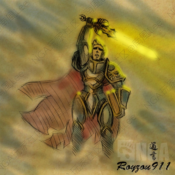 久经战火的暴风城铠甲与部落的黑色板甲你来我往,带有金色符文的巨剑和毁灭之锤不断突破着对方的护甲上。 最终毁灭之锤在击碎洛萨的巨剑后,又沿着弧线重重地砸碎了洛萨的头颅。随着艾泽拉斯雄狮的倒下,兽人大军的攻势愈发凶猛,被绿色“潮水”淹没的人类士兵眼中只剩悲痛与绝望。但图拉扬没有让负面情绪影响自己的行动,他将破碎的巨剑拾起,炽热的圣光从全身以及断剑处喷薄而出,在场的人类和兽人全部转身躲避这耀眼的光辉,就连周围的黑石都被图拉扬映得苍白。 “以圣光之名,你们不属于这里!你们将为自己对这个世界造成的伤害付出代价!”爆发出圣光之力的断剑将毁灭之锤打落,图拉扬用剑身敲晕了奥格瑞姆,高声鼓舞着在场的每一个联盟战士: